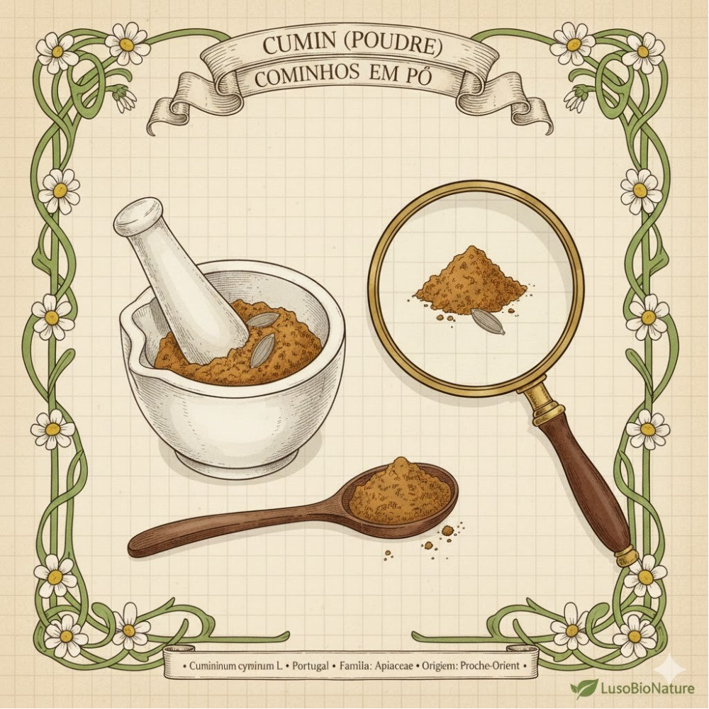 "Les Cominhos em Pó sont le secret des ventres légers. Chez LusoBioNature, nous apprécions cette forme pour sa biodisponibilité. Nous conseillons souvent d'ajouter une pointe de couteau de poudre de cumin dans chaque préparation à base de choux ou de haricots : cela change radicalement l'expérience digestive. C'est un complément nutritionnel puissant déguisé en épice de cuisine."