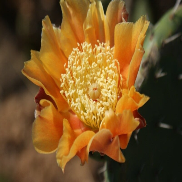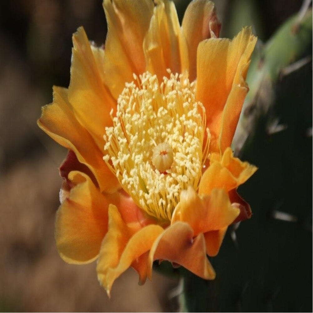 Les Fleurs (Flor) : De grandes fleurs solitaires, généralement de couleur jaune vif, orange ou rouge, qui apparaissent sur le bord supérieur des raquettes.