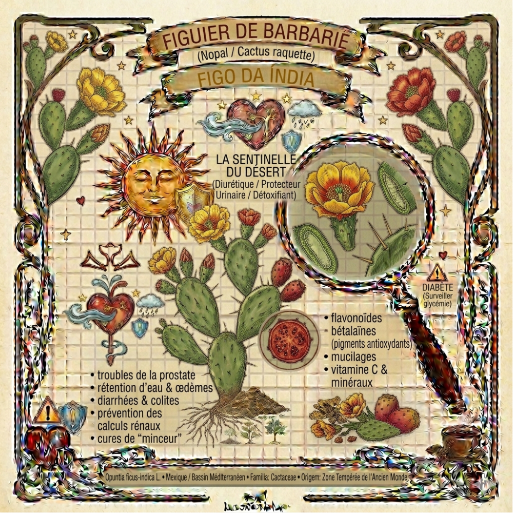 ⚠️ Diabète : Bien que le fruit et les raquettes soient hypoglycémiants, les fleurs peuvent aussi influencer la glycémie. Surveillez vos niveaux si vous êtes sous traitement.